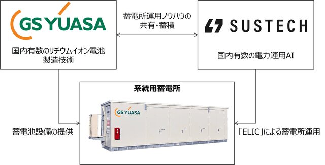 本共同事業は、国産蓄電池メーカーとして蓄電地市場を牽引するGSユアサと、世界最高水準のAI技術を有する電力運用プラットフォーム「ELIC」を開発・運用するSustechの技術を融合させた取り組みです。両社の強み・ノウハウの共有を通じて、国産技術に立脚した系統用蓄電事業のさらなる発展を目指します。